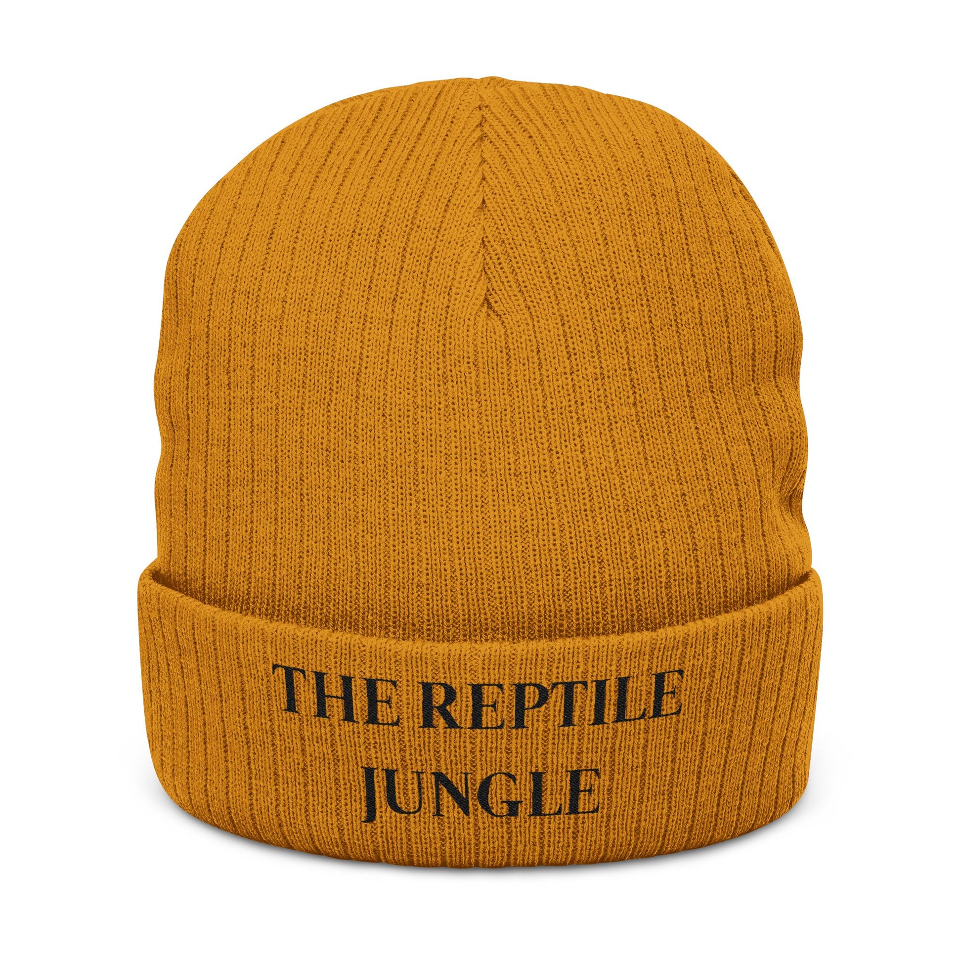 The Reptile Jungle Mustard Knit Beanie - Embroidered Cuffed Winter Hat